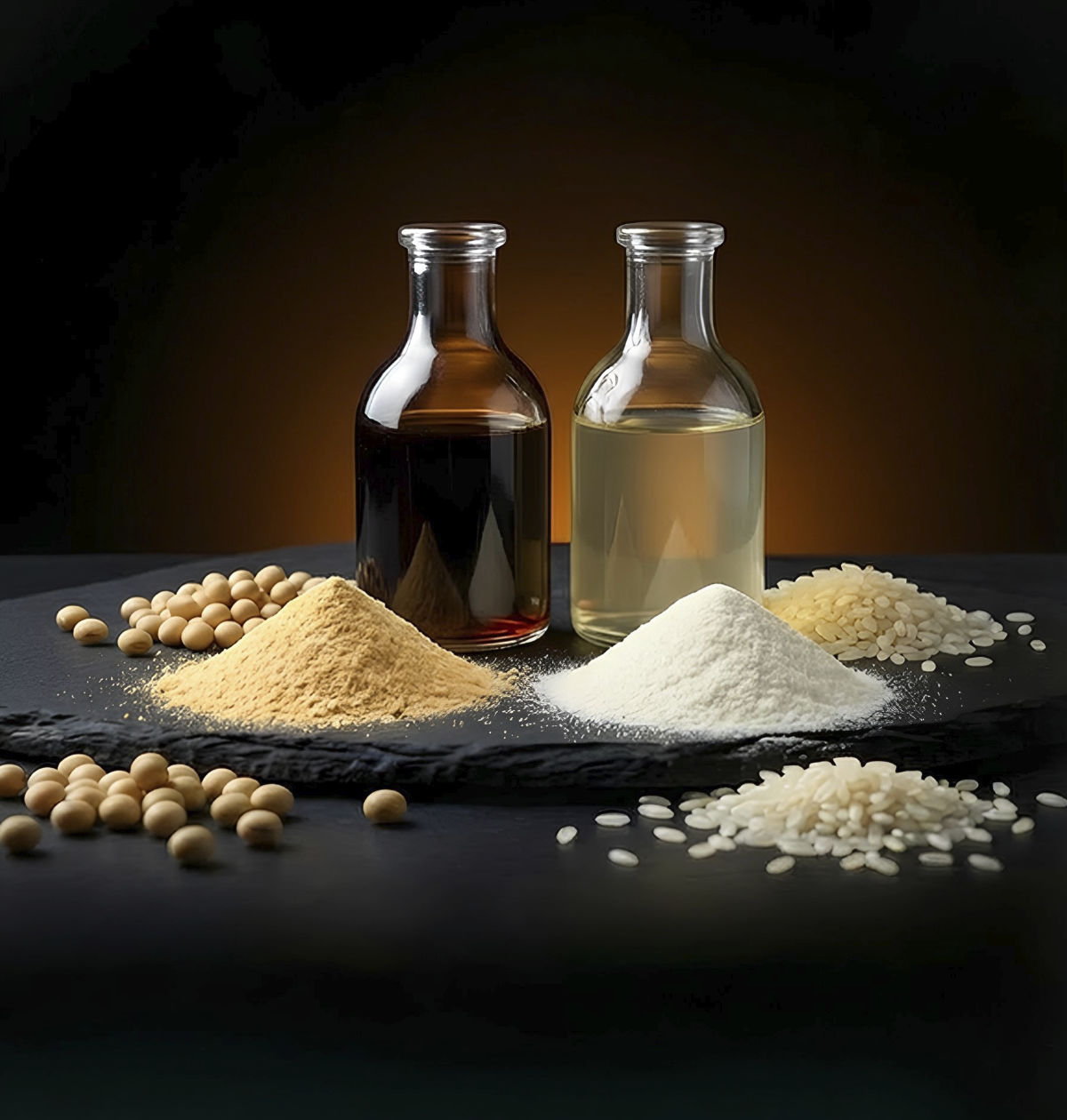 ซีอิ๊วและน้ำส้มสายชูหมักจากข้าวออร์แกนิกที่ผ่านกระบวนการหมักตามธรรมชาติอย่างพิถีพิถัน ให้รสเปรี้ยวกลมกล่อมและความหอมเฉพาะตัว